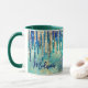 Chic blue turquoise gold glitter drips monogram mug