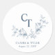 Elegant blue and white wedding monogram sticker ideal as wedding envelope seal and/or favour labels. Design with exquisite fine hand-drawn botanical details showcasing your initials. Ability to add any text or message you like. Part of our "Modern Elegant Typography Blue Wedding" Collection with various coordinating products available including envelopes. Visit the entire collection here: https://www.zazzle.com/collections/modern_elegant_typography_blue_wedding_collection-119316758339581837
