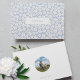 Chic & fresh with youthful charm. This couple wedding guestbook delights with a set of trendy and modern fonts, couple names framed in a light off-white rectangle against a blue and white floral background. The back includes a circular couple photo and event date. Your square or rectangle image will automatically transform into a circle once uploaded.