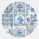 Chic Blue white toile de jouy Dolls and flowers Classic Round Sticker
