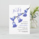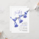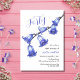 Elegant watercolor bluebell flower branch in a white backdrop birthday invitation.