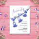 Elegant watercolor bluebell flower branch in a white backdrop birthday invitation.