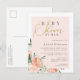Chic Blush Floral Gold Script Baby Shower By Mail Invitation Postcard