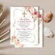 Chic Blush Pink Floral Gold First Holy Communion Invitation