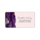 The left-hand edge of this elegant modern wedding RSVP address label features a purple watercolor agate border trimmed with faux gold glitter. The customisable text combines charcoal grey handwriting and copperplate fonts on a pale blush pink background.