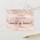 Chic girly maid of honour proposal postcard featuring unique trendy pink/rose gold background and typography ''maid of honour'' in modern lettering.
