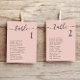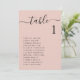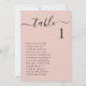 Chic blush pink wedding table seating chart card featuring "table" in an elegant script with swashes, the table number in classic serif typography and your guests' names in simple modern lettering. Create each table seating chart individually and add to your shopping cart one at a time, then check out once all tables are in your cart.