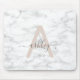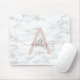 Chic Blush Pink White Marble Script Name Monogram Mouse Pad