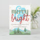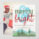 Our card’s minimalist and rustic charm is accentuated by modern and elegant script typography, featuring the phrase "merry and bright" in green and red with a bold, light blue ampersand. The pastel colours and bohemian style create a retro vintage aesthetic that is both stylish and trendy, making this card a standout choice for your holiday greetings.