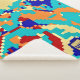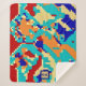 This vibrant vector abstract blanket features an energetic pixel-art-inspired design, combining bold blocks of red, blue, orange, teal, and cream. The playful and modern geometric pattern creates a visually captivating aesthetic, perfect for adding a pop of colour to any room. A customisable monogram square in the bottom allows for personalisation with initials, making it a thoughtful and unique gift or stylish accessory for personal use. This striking design makes it a standout decor piece.