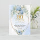 Chic Boho Blue Hydrangea Floral Gold 90th Birthday Invitation