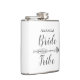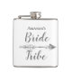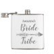 A flask with the caption "bride tribe" and a name above which can be customised along with an arrow in the middle for extra flair. Modern minimal boho vibes.