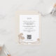 This sophisticated wedding information card is designed to provide guests with essential details in a chic and elegant manner. The card features a rich cream background, exuding a warm and inviting tone, harmoniously paired with botanical illustrations that add a touch of natural elegance. The text, neatly organised and easy to read, is presented in a classic serif font that contributes to the card's timeless appeal. This card serves as a perfect complement to the wedding invitation, informing guests of the reserved block of rooms and transportation arrangements for a seamless experience. The QR code smartly placed at the bottom ensures easy access to further details on the wedding website. This card is not only a beacon of information but also a keepsake of the couple's special day.