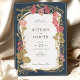 Presenting a sophisticated and stylish wedding invitation, perfect for the couple who appreciates the blend of classic and contemporary. This invitation card is adorned with a navy blue background that exudes a deep, serene elegance. The borders are beautifully embellished with botanical illustrations in shades of blush pink, gold, and ivory, adding a touch of nature's charm. The couple's names are prominently featured in an elegant serif font, followed by the wedding details in a clean, readable layout. The card ensures that the first glimpse of your wedding day is as memorable as the event itself.