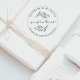 This beautiful round stamp is a perfect way to promote your small business and thank your clients for their support! It features a hand-drawn botanical motif of wildflowers, a mix of elegant serif typography, and a whimsical calligraphy script. On the top, under and around the round frame there is custom text: ´´handmade with love by´´ and on the bottom, ´´thank you for your support´´. Your name is in the centre of the space between the leafy branches. Customise it with your name by clicking on the ´´Personalise´´ button.