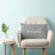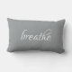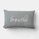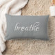 The stylish grey pillow features the quote breathe in a modern white typography.