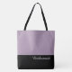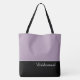 This lovely fashion forward tote bag shows the word "Bridesmaid" in white text colour over black with the upper tote bag in custom Sugared Plum. Has plenty of room for personalised text. Graphics and text are on both sides of this tote bag. Black handle. Customise further or buy as shown.