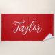 Chic Bright Red Custom Handwritten Script Beach Towel