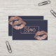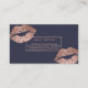 An elegant modern, stylish and simple brows business card with elegant script hand lettering style typography with faux rose gold frame and lips on a navy blue customisable background. A simple and professional design