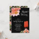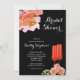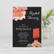 Beautiful pink and red watercolor flowers and two red champagne glasses on a black background highlight these brunch and bubbly bridal shower invitations. MATCHING items in our store.