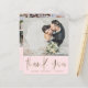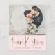 This elegant wedding thank you card features luxurious faux gold calligraphy on a soft blush pink background, paired with space to highlight five of your favourite wedding photos. A modern yet romantic two-sided design, it’s the perfect way to share memories from your big day while expressing heartfelt gratitude to friends and family. Fully customisable with your own images and message, this blush and gold thank you card makes a timeless keepsake. Ideal for bride and groom thank you cards, wedding photo stationery, or personalised post-wedding notes.