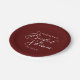 This elegant burgundy bridal shower paper plate features simple white script for a bride at a formal evening venue. Embrace romance with this rich, bold colour. Minimalist and romantic typography decor.