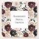 Chic Burgundy Cream Floral Bridal Shower Square Paper Coaster