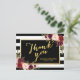 Chic Burgundy Floral Gold Black Wedding Thank You Postcard