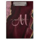 Chic Burgundy Gold Glitter Agate Custom Monogram Clipboard