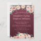 Elegant Vintage Watercolor Floral Burgundy Red Background Wedding Celebration / Bridal Shower Formal Invitation Card Templates.