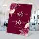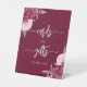 Chic Burgundy Silver Floral Wedding Cards Gifts Pedestal Sign