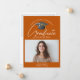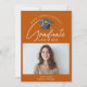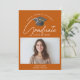 This modern burnt orange custom senior graduate announcement card features your high school or college name for the class of 2025 above your favourite senior portrait photo. Customise with your graduating year under the chic handwritten script and grey grad cap for great personalised graduation photograph announcements. Add a 2nd picture on the back along with personal details.