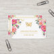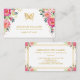 Feminine business card featuring gorgeous illustration of watercolor blush and hot pink flowers and intricate faux gold butterfly