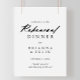 This chic calligraphy rehearsal dinner welcome sign is perfect for a rustic wedding rehearsal. The simple and elegant design features classic and fancy script typography in black and white.