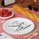 A stylish calligraphy engagement party paper plate. Easy to personalise with your details. CUSTOMIZATION: If you need design customisation, please contact me through chat; if you need information about your order, shipping options, etc., please get in touch with Zazzle support directly.
