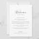 This chic calligraphy silver wedding welcome letter is perfect for a rustic wedding. The simple and elegant design features classic and fancy script typography in silver.