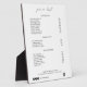 Simple black and white business price list plaque with "price list" in calligraphy. At the bottom is your company name, contact info, social media icons and QR Code. A minimalist design with chic typography for an elegant touch.