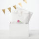 Trendy and elegant candy bar favour bag with graphics of a gold tone decorative frame around custom black text. A single pink watercolor painted peony flower decorates the top of the frame. Personalise the text for wedding event. Great for candy, popcorn, and dessert bars.