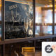 Stylish New Year's Eve party square window cling sign features a champagne glass, clocks, confetti and fireworks on a midnight blue background with your party details in chic lettering. MATCHING items in our collection.