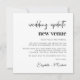 Chic wedding change of venue announcement with "wedding update new venue" written in a modern script and bold trendy typography (customise to "new date," "smaller wedding," etc). Personalise your change of plans message, add your names in a signature-like script and add your wedding website on the reverse or leave blank.