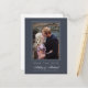 Modern, chic save the date photo postcard with elegant script and modern typography. The save the date card has a dark blue background with a subtle thin white frame around the photo. You can easily customise this save the date card with your upcoming wedding details, your engagement photo and a personal message on the back. Exclusively designed for you by Happy Dolphin Studio. If you need help or matching items, please contact us at happydolphinstudio@outlook.com. We're happy to help you make your wedding the most beautiful day.