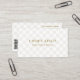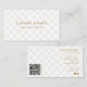 These elegant checked business card features a light tan chequered background with gold text. Add your business name and tagline to the front of the featuring a sleek background with elegant serif font. Your business address and contact information including social media and icons, and QR code on the back. Perfect for personal brands, boutiques and more.
