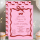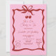 Chic Cherry on Top Bow Pink and Red 1st Birthday Invitation