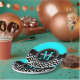 Elegant aqua and black chevron pattern with the birthday girl's name and monogram at the centre.