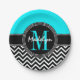 Chic Chevron Bright Aqua Birthday Monogram Paper Plate