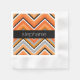 Chic Chevron Pattern Black Grey Orange with Name Napkin