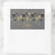 Black and gold Christmas tree ornaments and snowflakes on a grey background highlight these rectangle holiday stickers with your name and Merry Christmas in chic lettering. Perfect for your personal or business holiday parties. MATCHING items in our collection.
