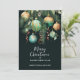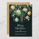 Elegant business Christmas holiday flat greeting cards feature a design of pine branches, green and gold Christmas ball ornaments and ribbons on a black background with your details in chic lettering on the front and your personal greeting, thank you and logo on the back. Order PRINTED and/or INSTANT DOWNLOAD to send digitally. MATCHING items in our collection.