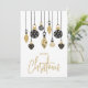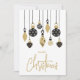 Flat business holiday greeting cards feature black and gold (not metallic) Christmas tree ornaments on a grey background with the words Merry Christmas on the front. Your personalised thank you message is printed on the back. PRINTED and/or INSTANT DOWNLOAD! MATCHING items in our collection.