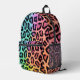 Fun and vibrant leopard fur print like a certain brand we all loved in the 90's and is coming back in popularity! The photo shows the texture which makes it look like it is soft fur or fabric. Colour has many shades of the rainbow against a black leopard or cheetah animal print pattern. Glam Trendy Colourful Rainbow Leopard Animal Print Printed Backpack. Great for back to school for your children, or for a teacher appreciation or holiday gift.